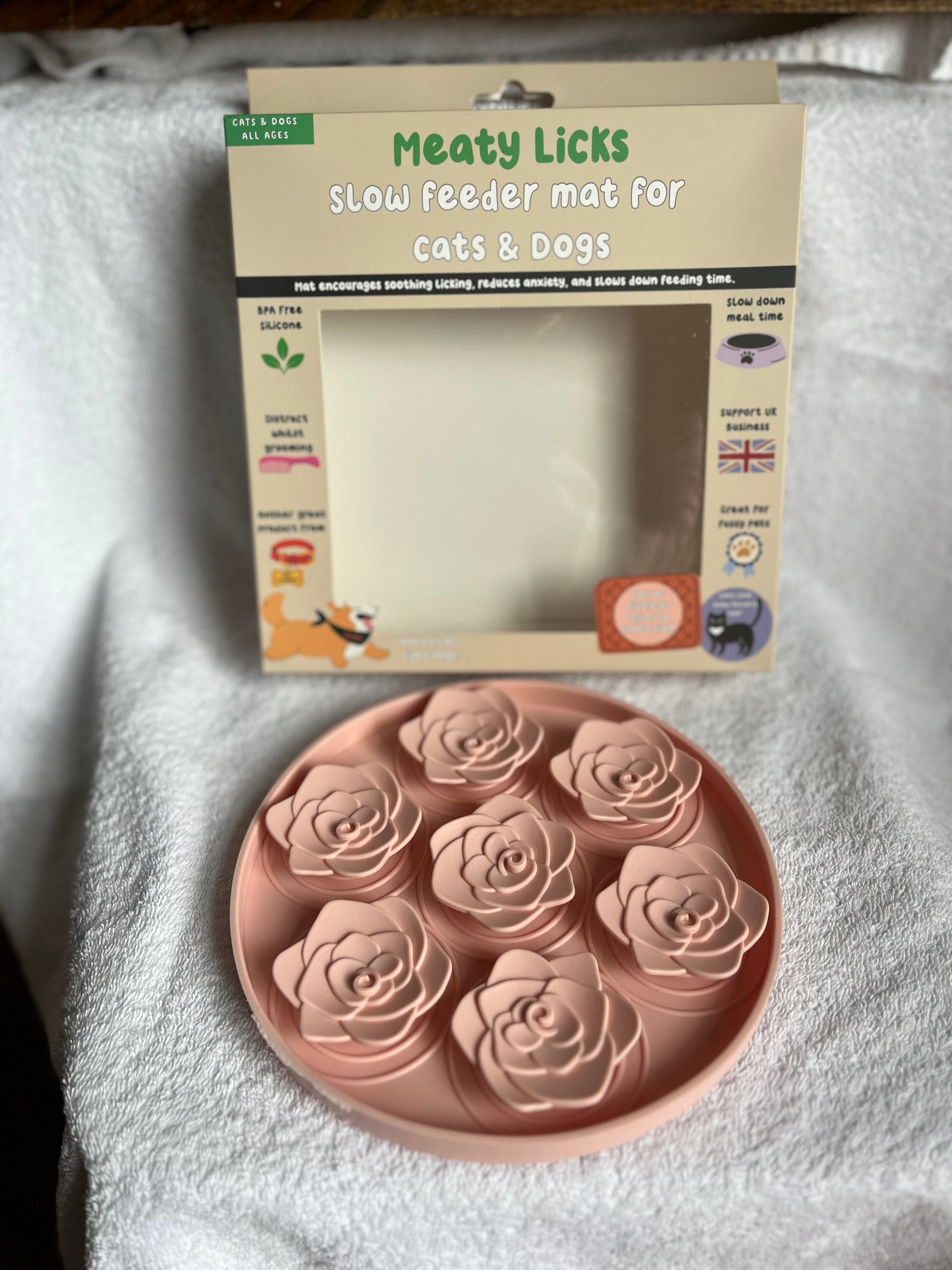 Make mealtimes calmer and healthier with the Meaty Licks Slow Feeder Mat, designed to encourage slow eating, reduce anxiety, and promote better digestion for both cats and dogs.