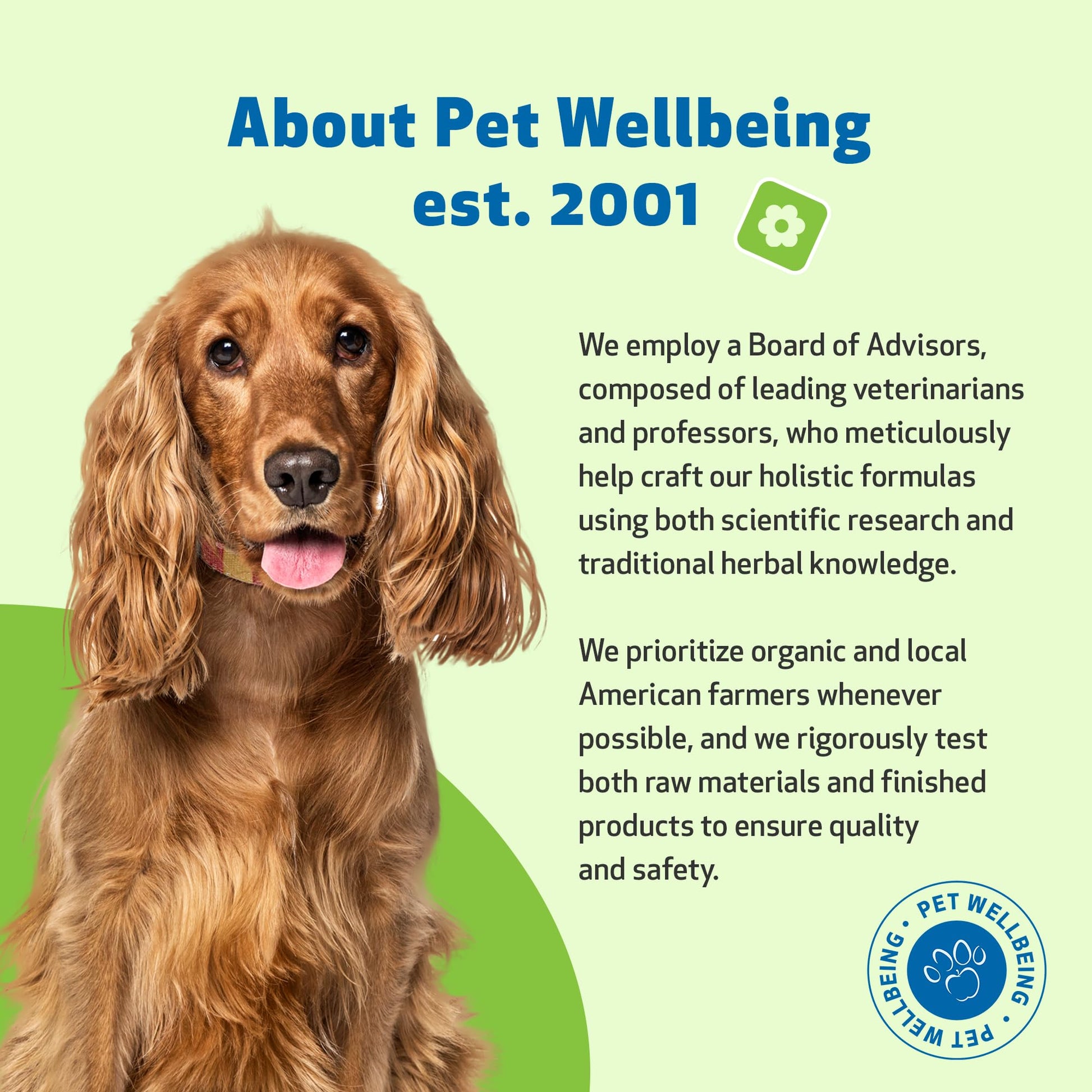 - Since 2001, millions of happy pet parents have trusted Pet Wellbeing. Our VET-FORMULATED supplements are proudly MADE IN THE USA with high-quality ingredients and rigorous testing. We use a Board of Advisors—leading veterinarians and professors—who meticulously craft our herbal formulas using science and traditional knowledge for maximum effectiveness.