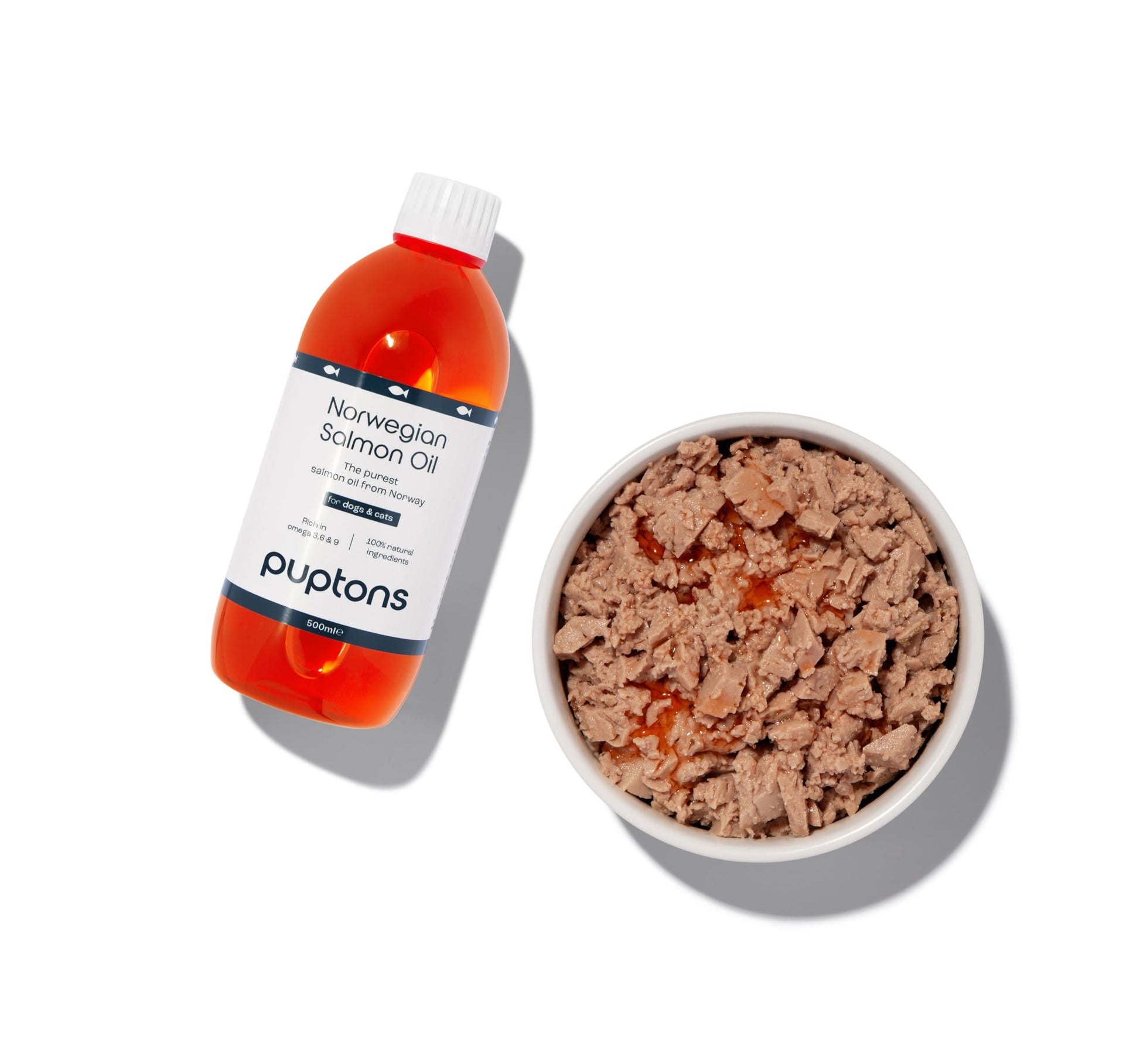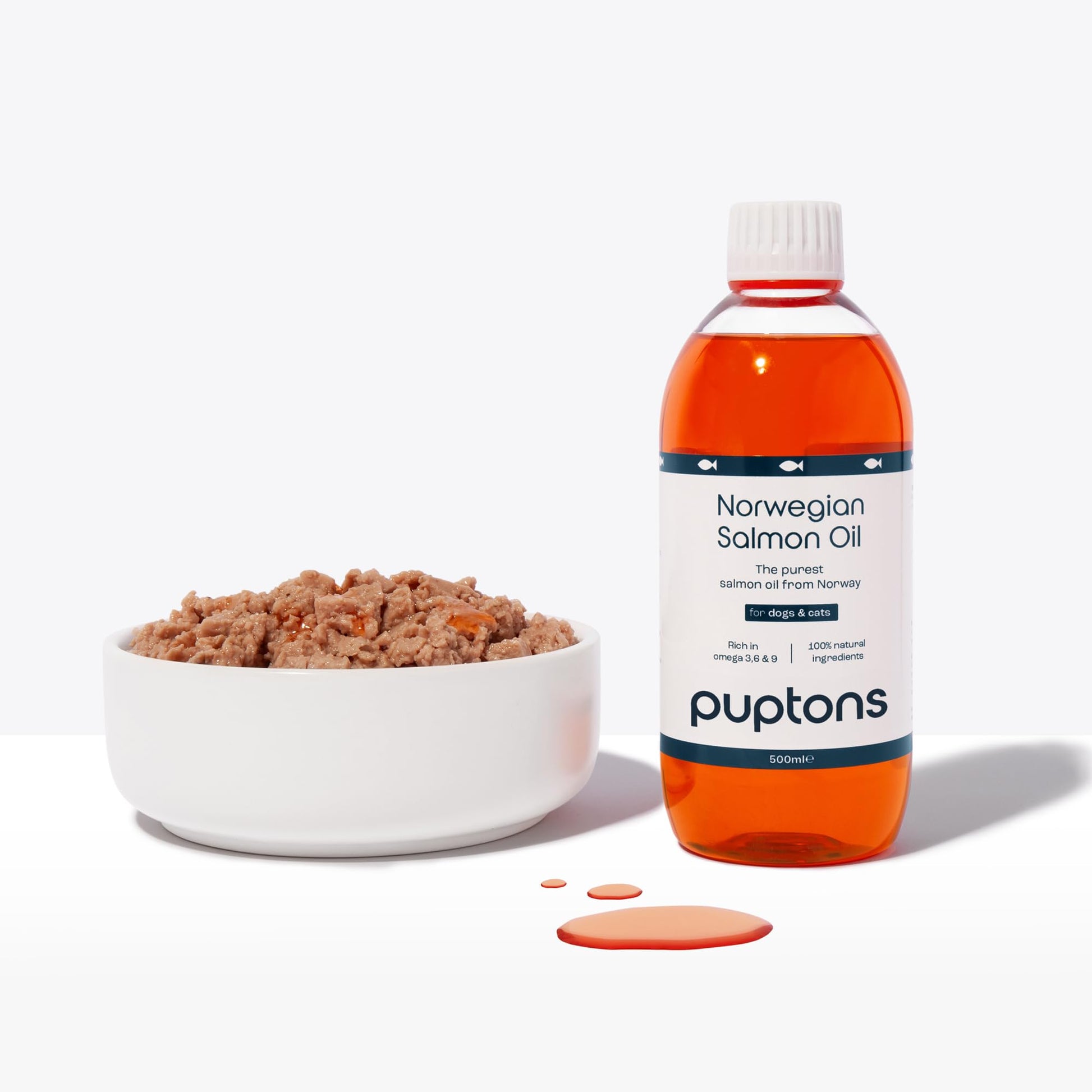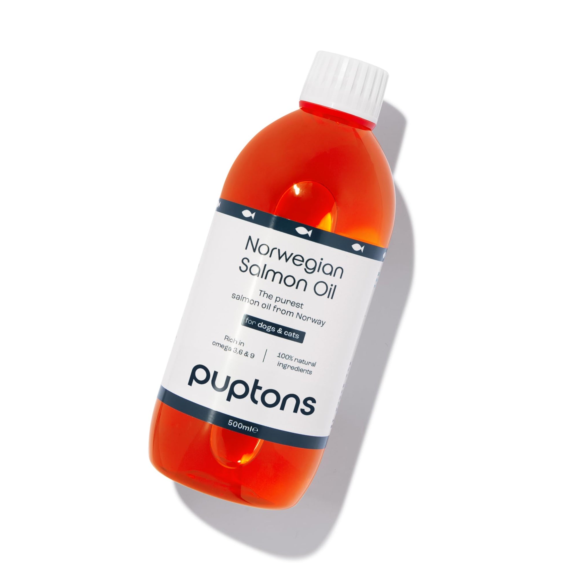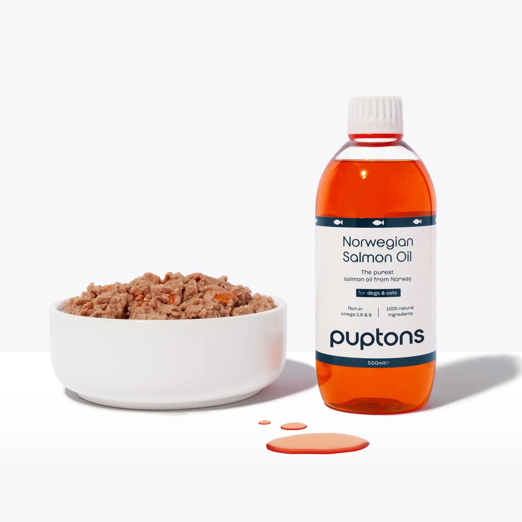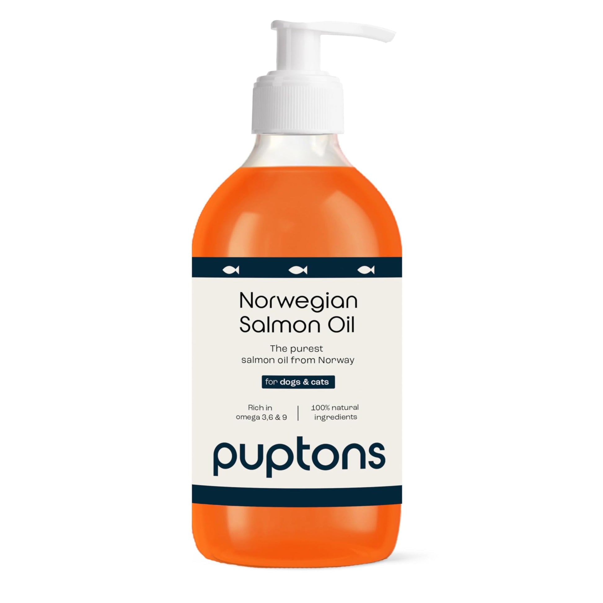 Puptons Norwegian Salmon Oil for Dogs & Cats | Contains 21 Omega Fatty Acids | Fish Oil Supplement for Glossy Coat, Immune Support, Itchy Skin, Softer Paws, Joint & Brain Health | 500ml without pump