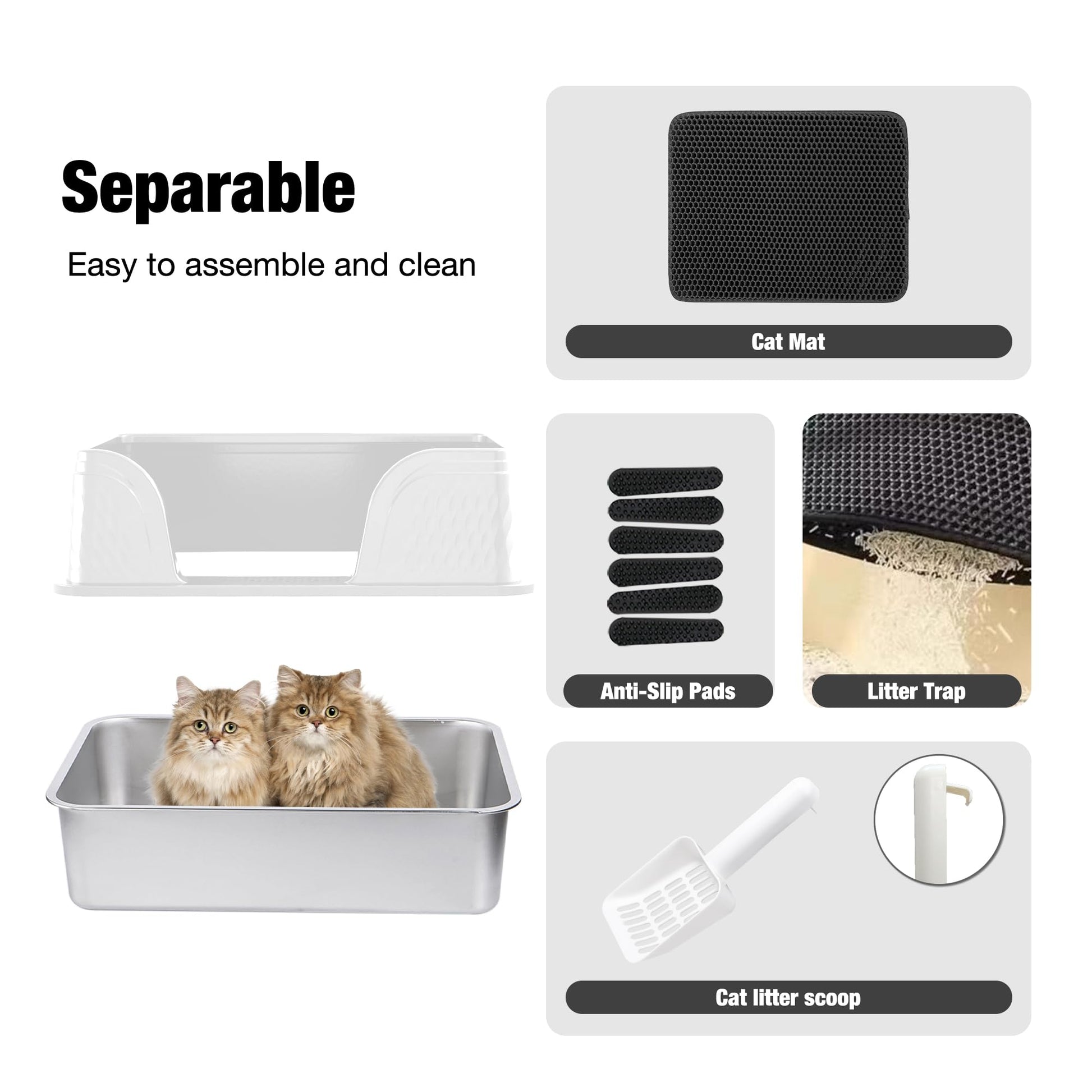 Crafted from high-grade stainless steel, this durable metal litter box resists corrosion, cracks, and warping — ensuring long-lasting performance. Unlike plastic trays, it won’t absorb odours or stain, providing a cleaner, more hygienic solution for your cat.