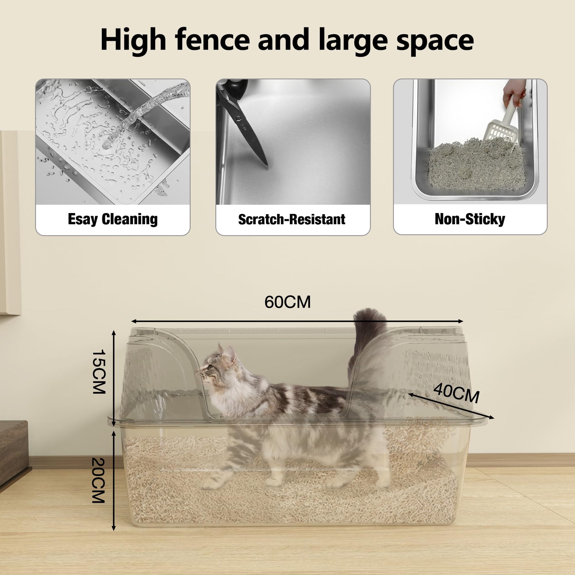 Designed with high walls, this litter tray keeps litter and urine neatly contained. Ideal for cats who love to dig, scratch, or spray — the anti-splash fence and deep tray prevent mess and leakage around your floor.