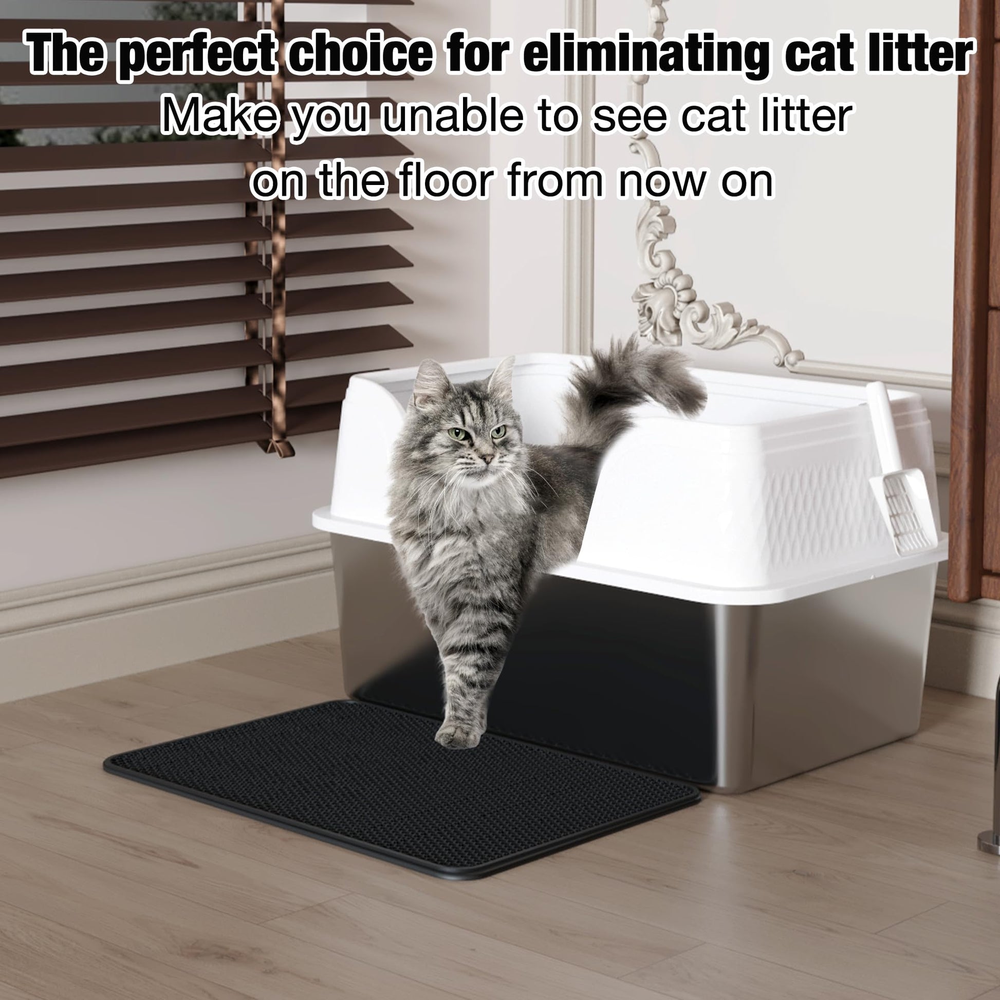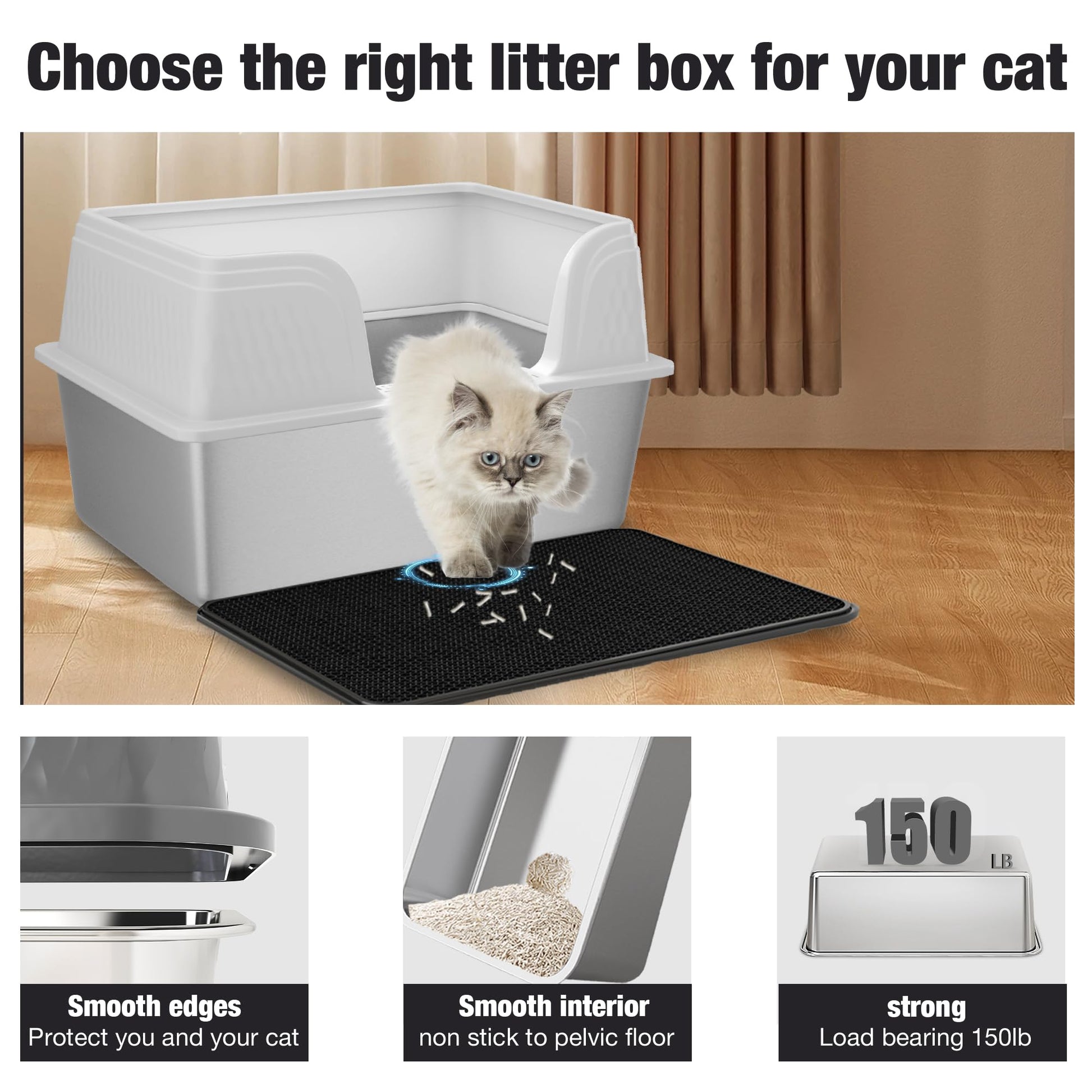 Finished in sleek white stainless steel, this litter box blends seamlessly with any modern décor. Its smooth, glossy surface adds a premium touch to your home while preventing litter and waste from sticking — keeping it cleaner for longer.