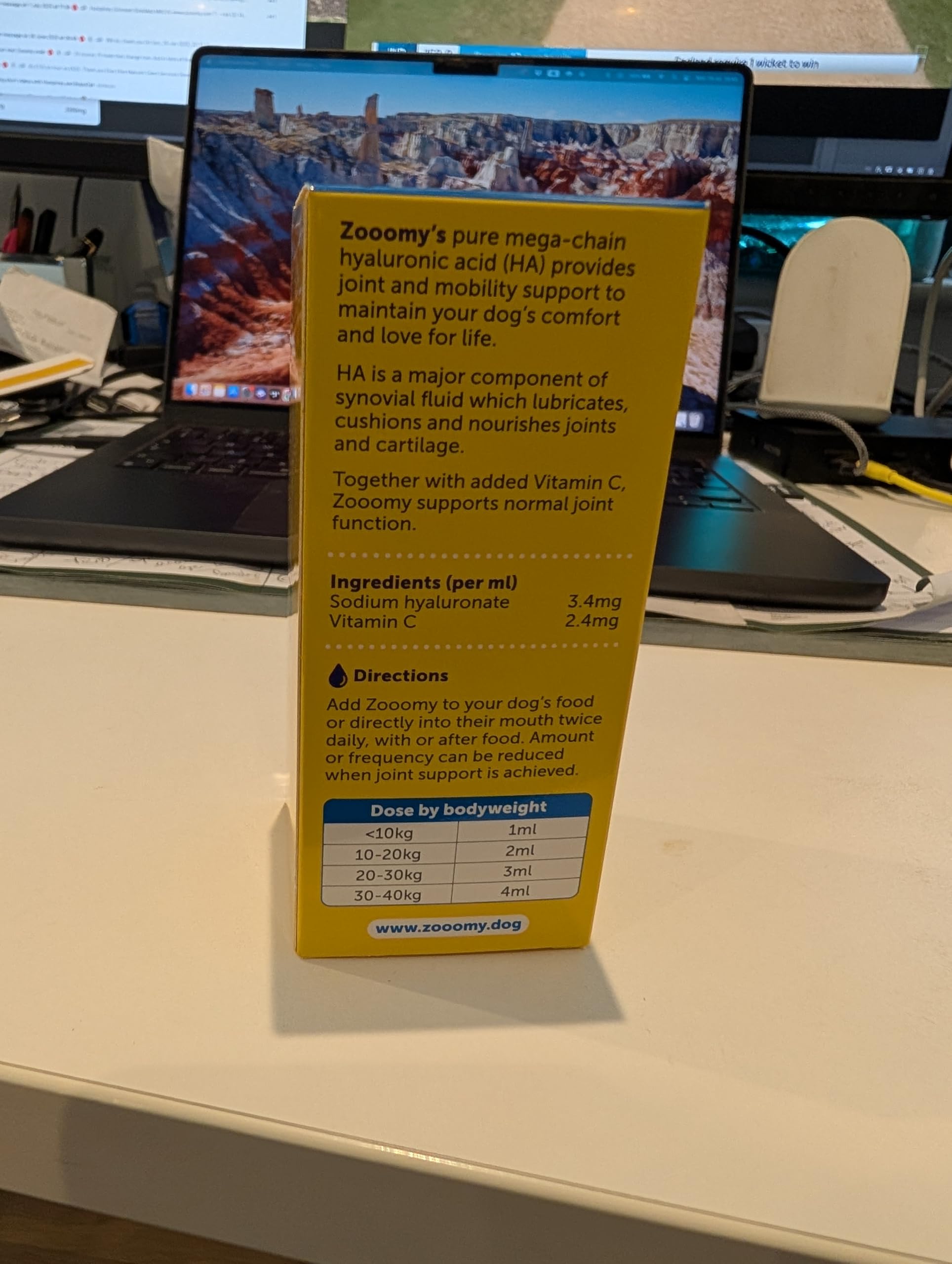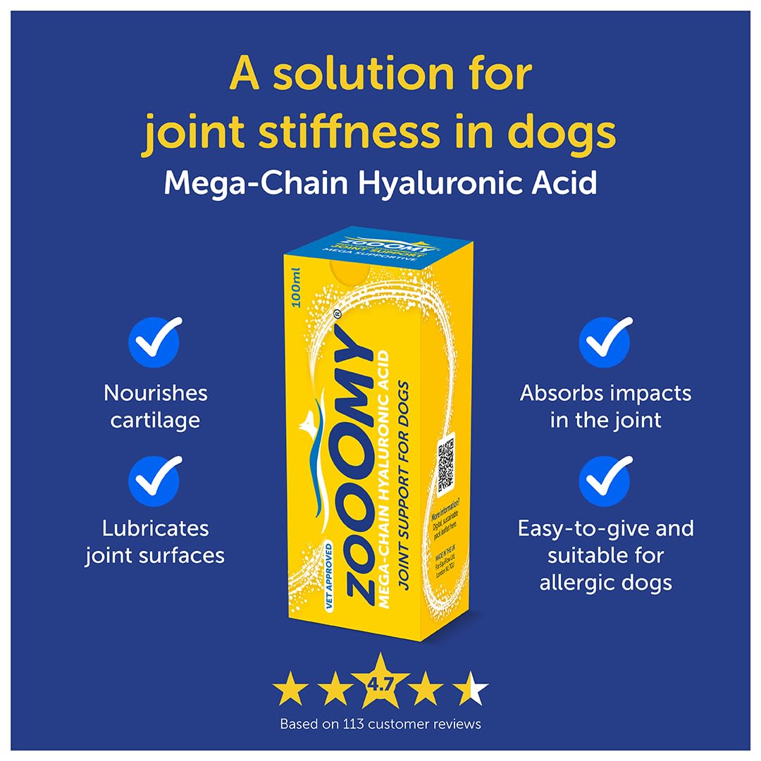 Zooomy Liquid Dog Joint Supplement | Hyaluronic Acid for Hip & Elbow Care | Canine Joint aid | 100ml